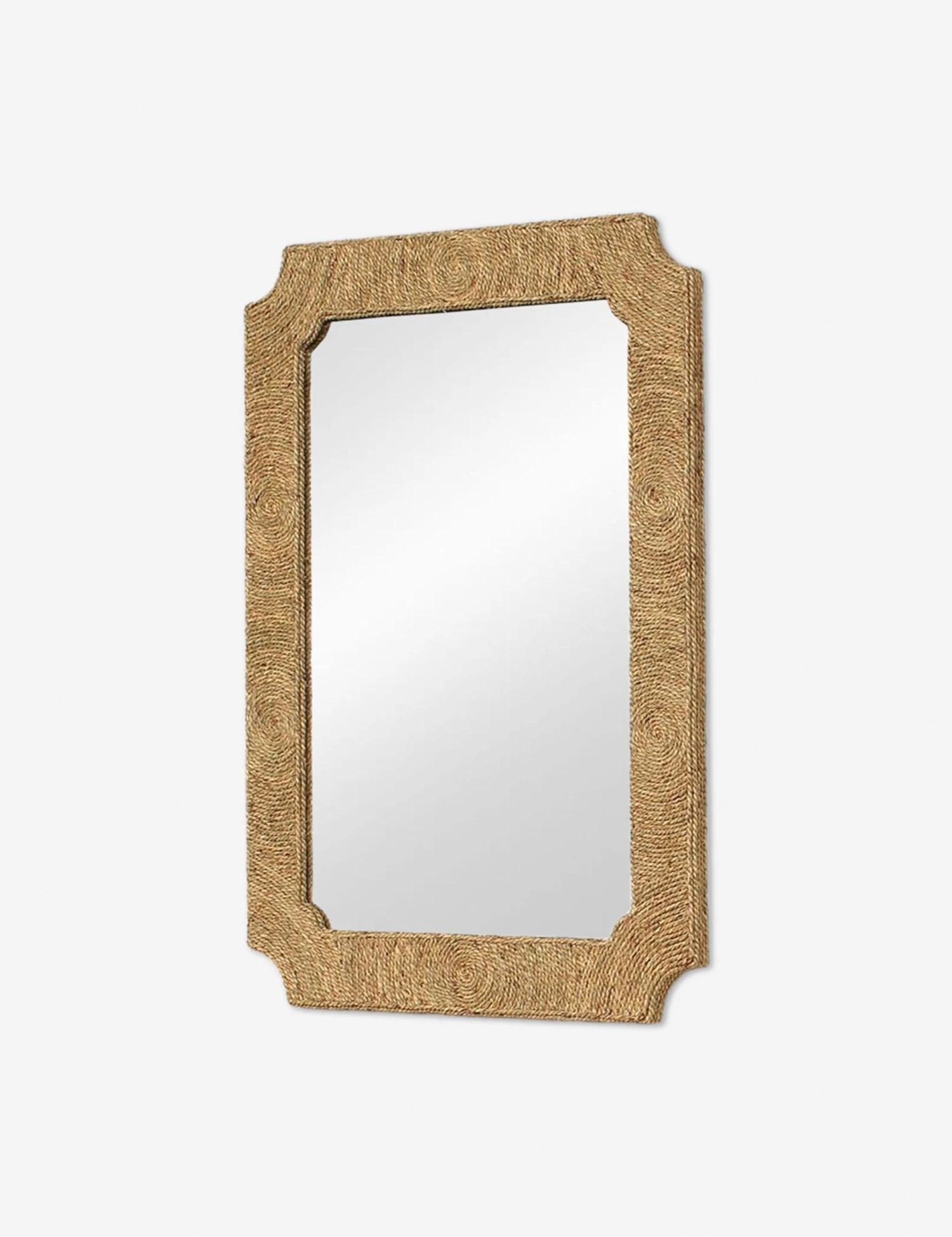 An intricately woven pattern brings eye-catching appeal to this unique mirror. The scalloped corners offer a timeless silhouette, while the seagrass frame inspires a fresh textural touch. Hang this mirror in your powder room or living space for a warm organic tone.